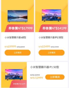 - 小米智慧顯示器 P1 50 型:NT$12,999(現省 NT$3,000)