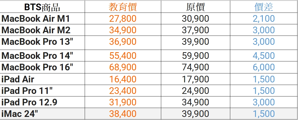 今年的 Apple BTS 教育價優惠活動內容基本上與其他各國相同,只要符合教育身份的消費者購買符合資格的 Mac 或是 iPad 可享教育價優惠以及額外的贈品。