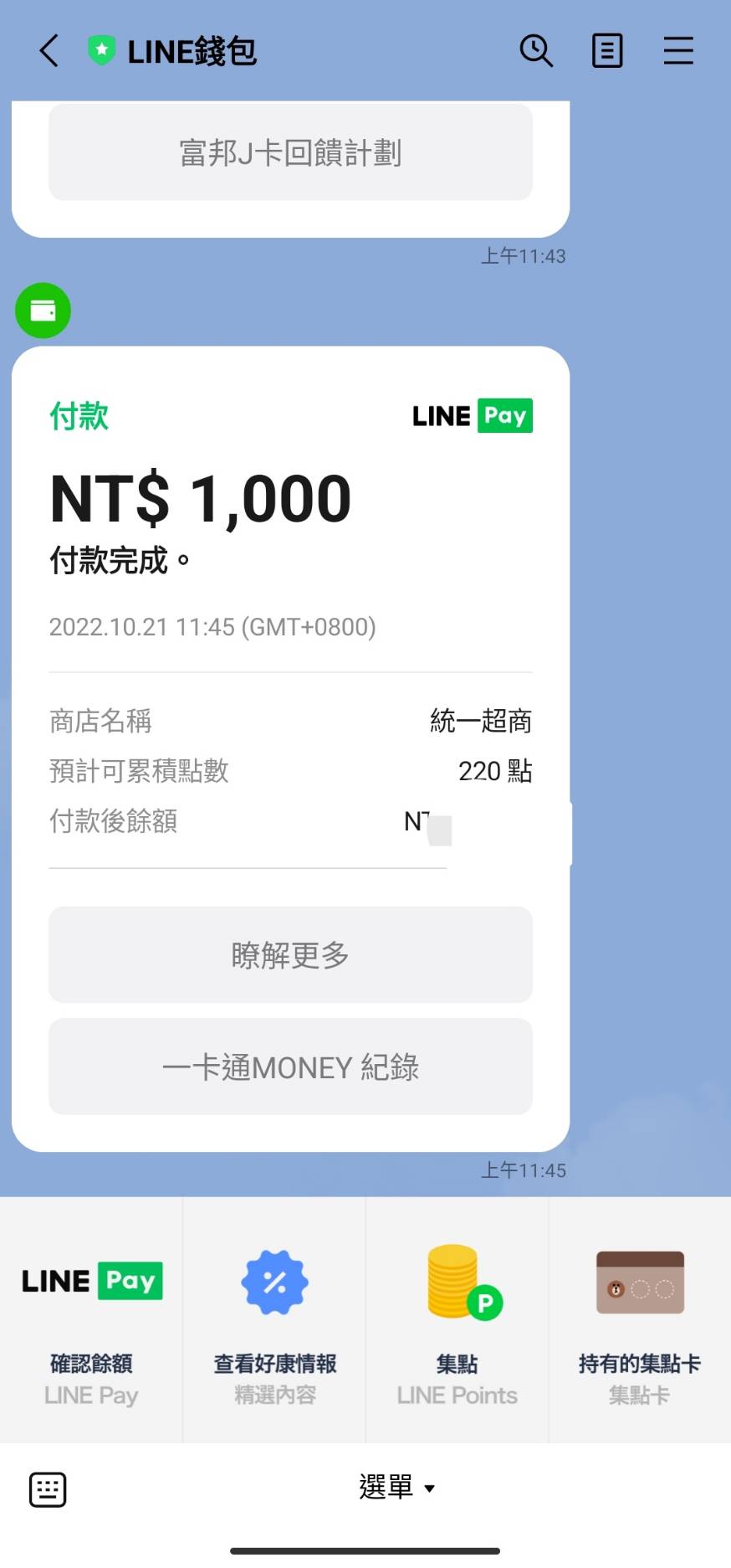 10/24 12:45一卡通MONEY滿額
