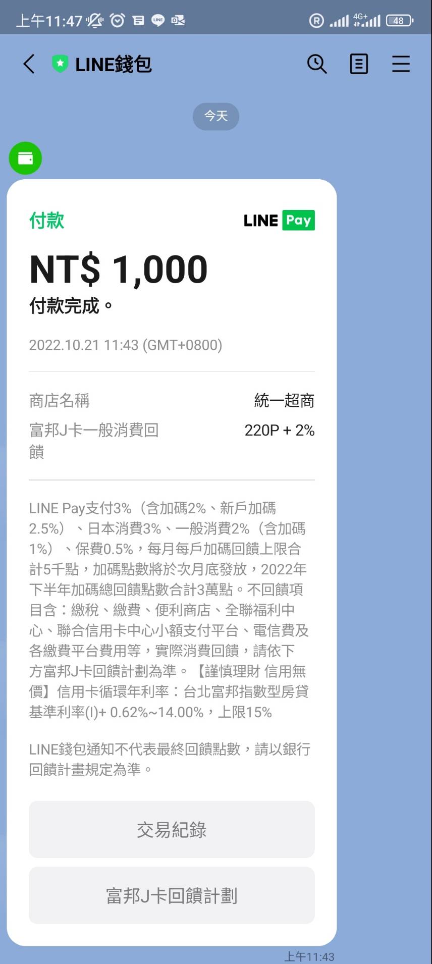 - 確認付款畫面有拿到220P點畫面