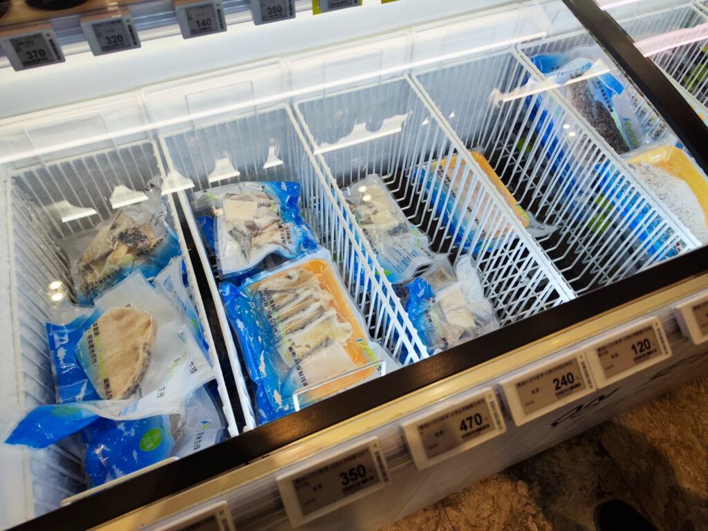 這次我鎖定了魚類商品,剛好最近也入手了一台直立冷凍櫃,當然趁這機會採買些會吃到的食物,查詢了附近有參加「挺在地 農漁GO購購」店家,就近去了永安鮮物採買,冰櫃上標籤已經分類好活動產品,因此採買可迅速且容易計算總額是否為600元的倍數。