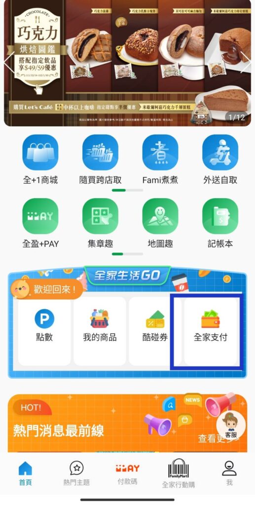 透過儲值至錢包之後,餘額會回到當初購買的金額,這時候也有一張全家的中杯入單品美式咖啡可兌換。