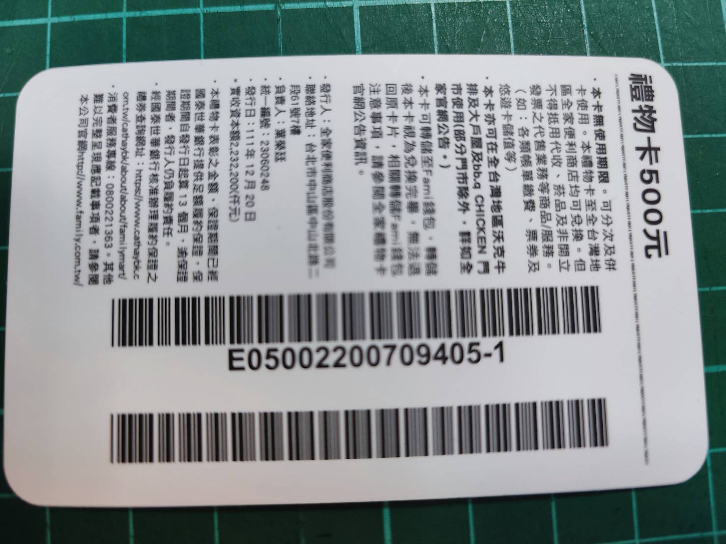 A:每個全家帳號零用金每個月只能使用一萬元,也就是20張500元禮物卡的額度,滿額必須等下個月或是更換全家帳號購買禮物卡。