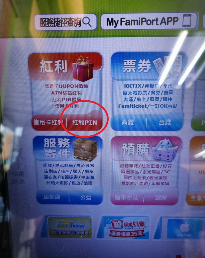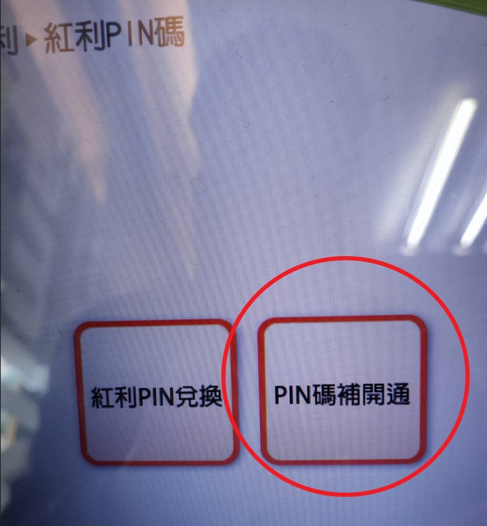 FamiPort機台,點選紅利一利PIN碼PIN碼補開通一確認閱讀條款一輸入補