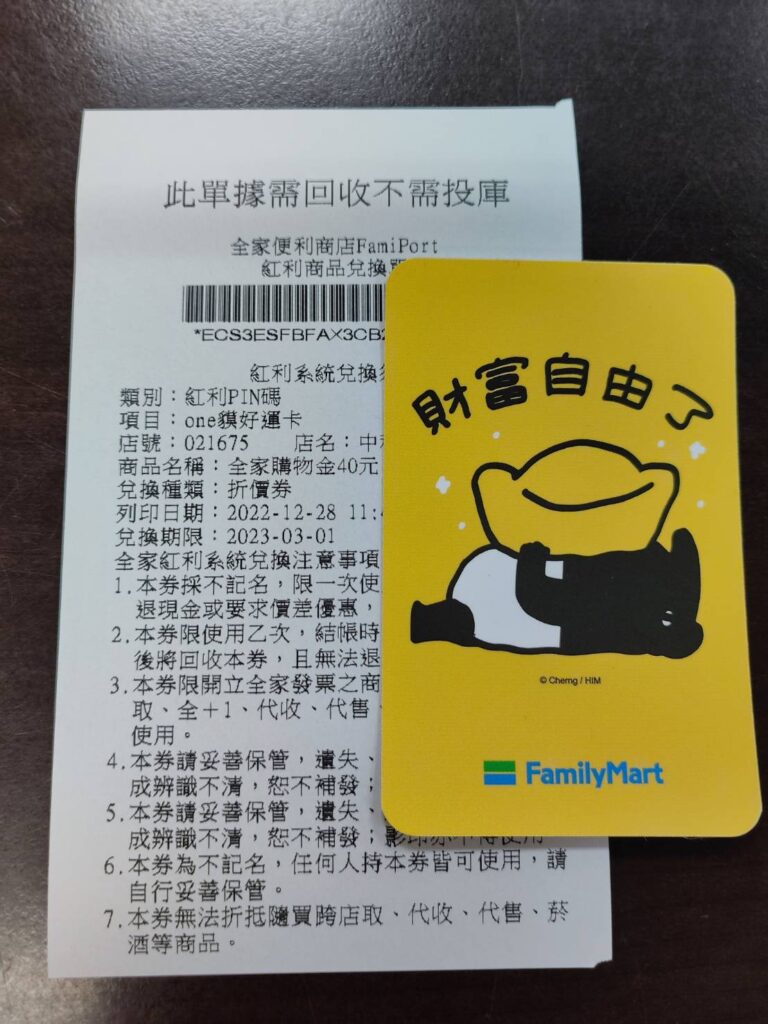 當本卡其中一段條碼無法判讀時,請補開通/列印兌換券:至全家便利商店店舗