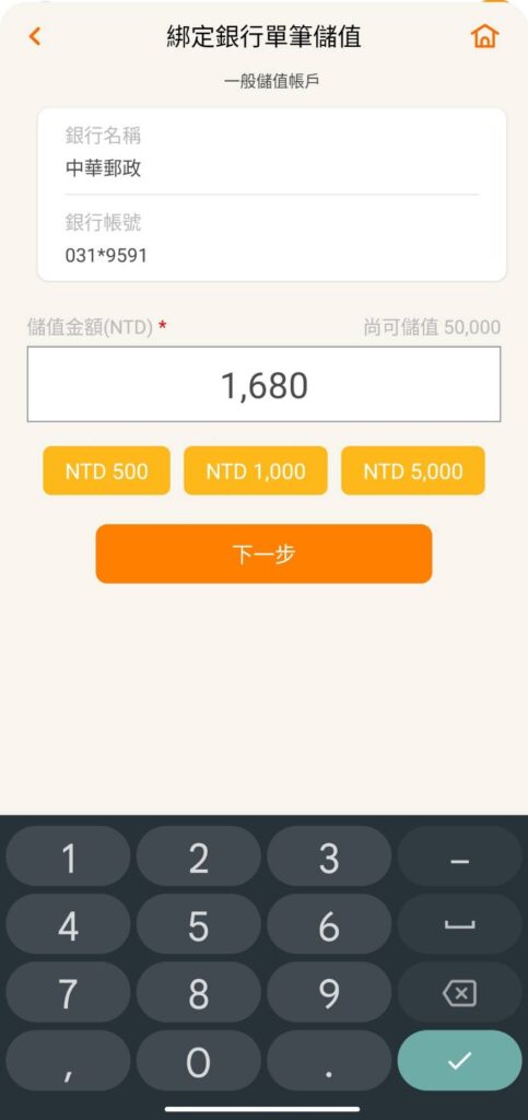 首先解釋下整個回饋邏輯,每帳號透過上述的三個活動疊加,共可以拿到超過700點橘子支付零用金(1點折抵1元,消費可全額折抵)。透過帳號上的「帳戶」消費才享有零用金回饋,因此我們必須透過儲值方式把錢轉入「帳戶」內。