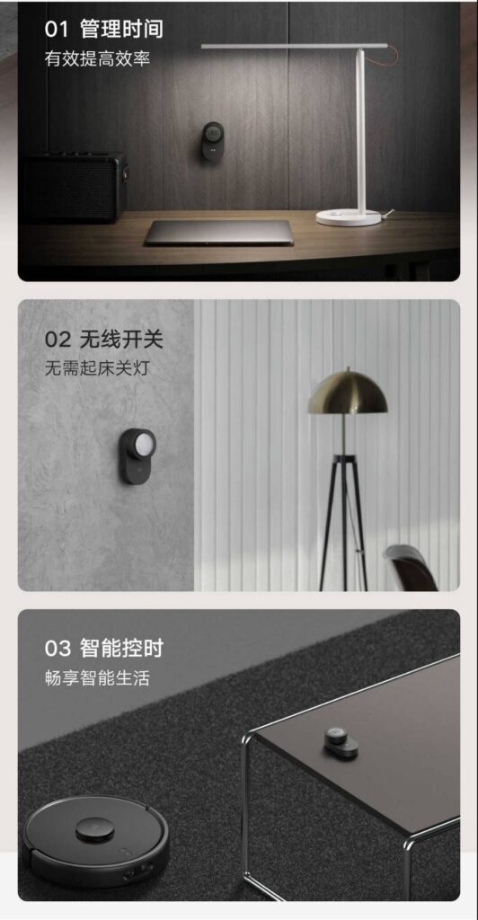 智能計時器最大的特點在導入米家APP(大陸區),不僅是計時器也是一個無線開關,透過米家APP設定智能場景,控制窗簾開合、吸頂燈開關等等各種應用 (產品需接入米家APP),背面則有磁鐵可依照需求吸附使用