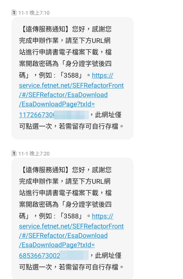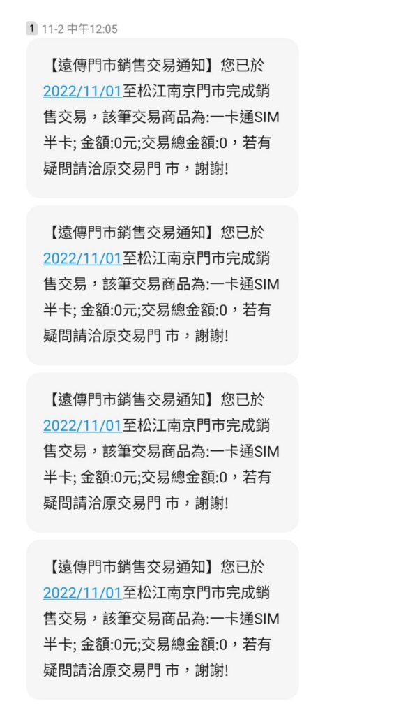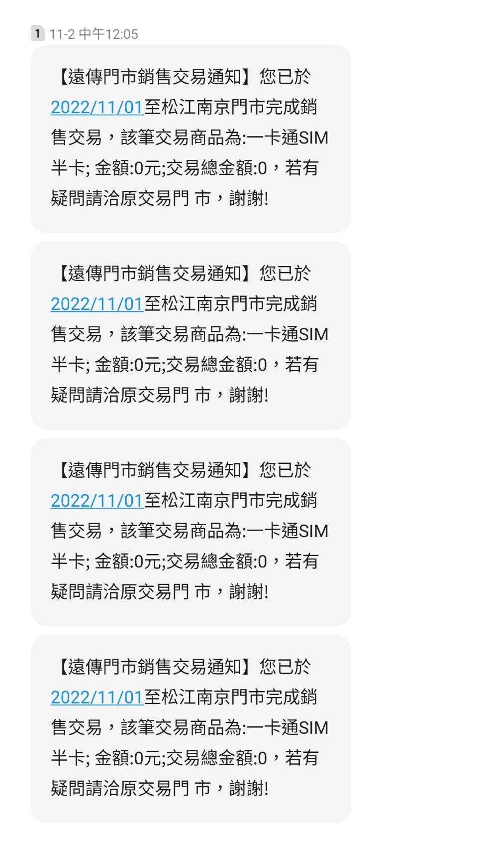 門號每組申辦成功之後就會收到官方的簡訊通知
