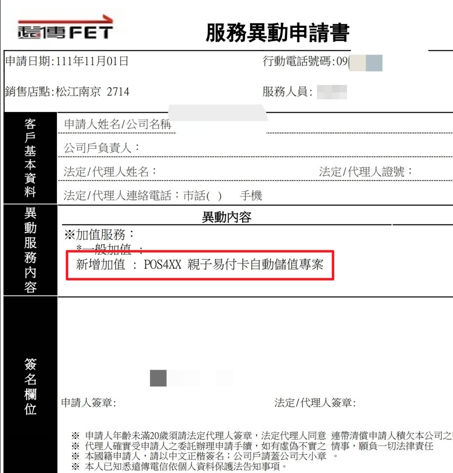 「遠傳超4代親子易付卡自動儲值」方案,即日起遠傳月租型(限)個人用戶於直營門市【※公司戶(公帳)、外籍人土或代辦人不可申辦此活動】,本方案屬於月租用戶透過加購方式新申辦一門全新門號的親子易付卡,且申辦之月租門號狀態須正常使用中方得享產品優惠,若月租型門號有停話/欠費情形,將無法申請成功。