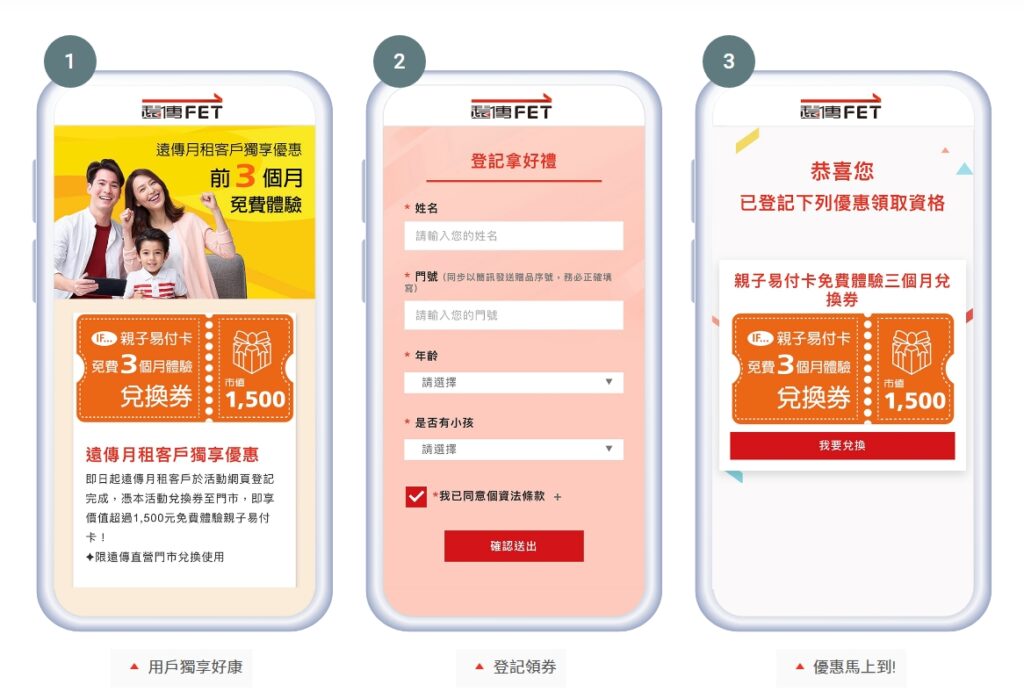 遠傳電信推出「親子易付卡自動儲值專案」,針對月租型用戶,只要到遠傳直營門市新申辦或是續約,就可以拿到「前三個月免費試用」的好康。