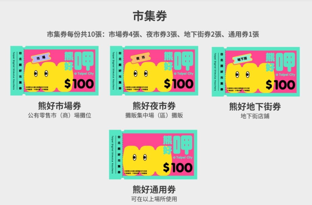 (台北熊好市集券,面額100元,一份10張),共1,000元面額。