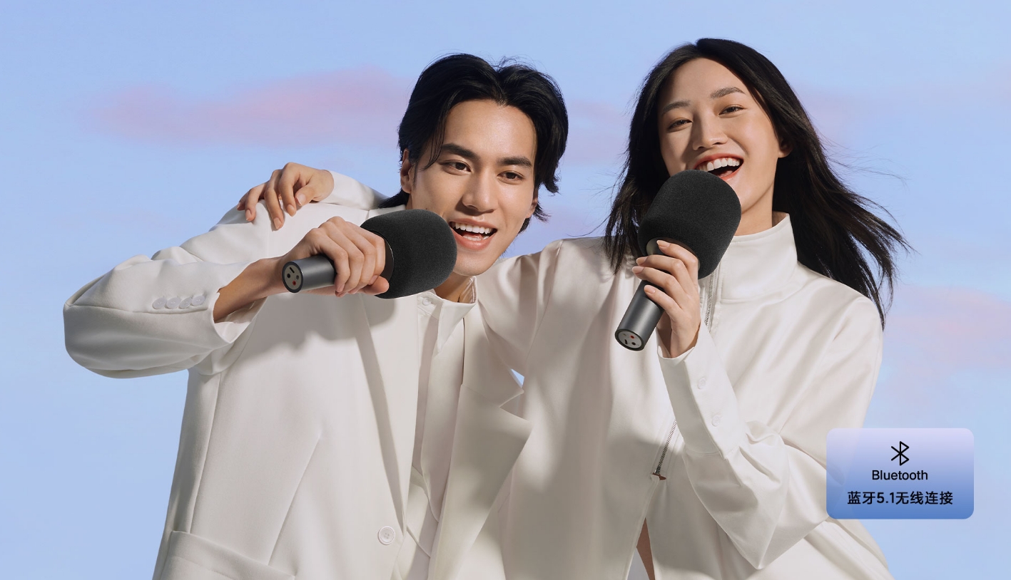 小米新品透過藍牙5.1連結,可與即將上市的86吋電視配對,內置2500mAh大容量鋰電池,可連續唱7小時,麥克風有六大優點